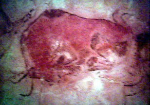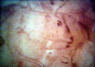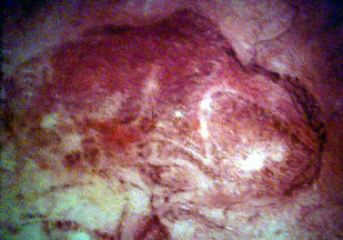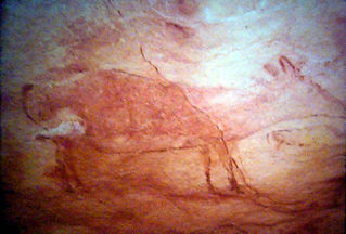 Description: Paleolithic. Silhouette painting. Horns are depicted.