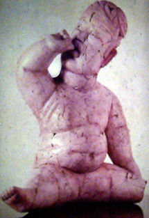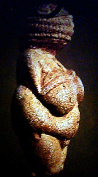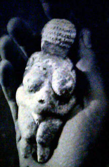No face. Stomach and breasts are emphasized. Figure is bulbous.