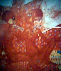 Description: Painted limestone. Approx. 1.75 ft. high. Has