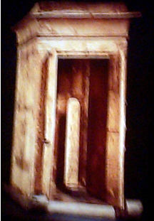 body parts (one of four jars). Looks like coffin. Liver, stomach,