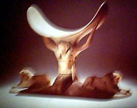 Description: Alabaster (stone). 10 13/16 inches high, 15 1/8