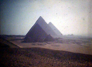 Title: Great Pyramids: (left to right) Mendaure, Khafre, Khufu