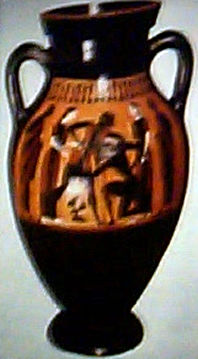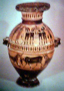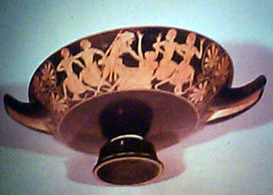Description: Black figure. Kylix. Dionysus was the Greek god