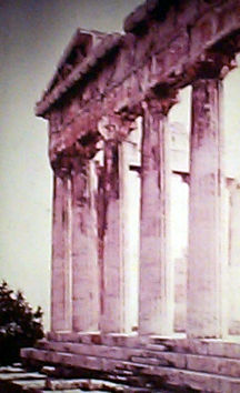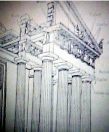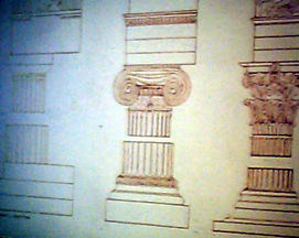 Description: Doric columns. Mixture of Doric and Ionic elements.